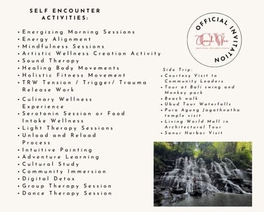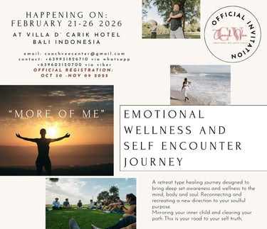 CVL launches " MORE OF ME" a healing and recovery journey through coaching session at the Villa D' Carik ,Denpasar Bali Indonesia. A 6-day, 5- nights intense self encounter retreat type emotional wellness program combined with cultural study, self reflection, inner child routine activity, healing process, therapy session, group coaching session, mindfulness body movement, digital detox, sound wave healing , sundating program, tension release work , culinary wellness and more....